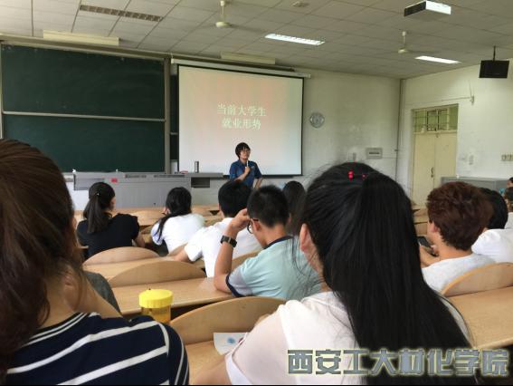 会议中,刘老师不断提醒大家多从环境中的“合理”一面去对待工作岗位与自己理想的工作岗位中实际的差异,对13级学生在目前应该为就业所做的准备,以及未来求职提出了一些可行性建议。同时,刘老师强调“应该树立先就业、后择业的就业观念”,希望13级学生在现阶段能处理好学习与找工作、考研之间的关系。刘老师用丰富的案例,生动的表述,鼓励的态度感染了在场的每一个学生。