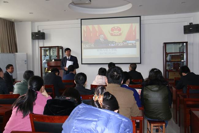 会议伊始,党委书记路金龙宣读了习近平总书记在全国高校思想政治工作会议重要讲话精神,路书记强调,广大教师必须坚持正确政治方向,高校是中国特色社会主义高校,高校立身之本在于立德树人,要用好课堂教学这个主渠道,协调思想政治教育同步进行,全方位育人。高校教师要明道、信道,努力成为先进思想文化的传播者、党执政的坚定支持者。坚持四个“相统一”,以德立身、以德立学、以德施教。然后,党委副书记张治宏带领大家学习了李克强总理在十二届全国人大五次会议上作的政府工作报告。最后,院长坚增运作总结发言,并强调在工作之余,要关注“两会”动态,关注国家发展,在自己的工作岗位上为国家发展多做贡献。