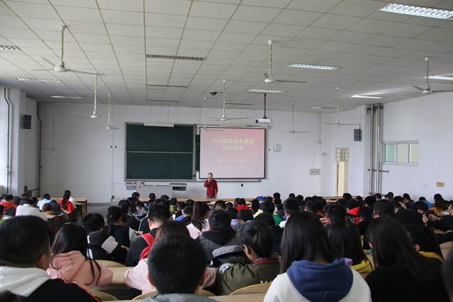 动员大会上,张老师首先向大家介绍了当前就业形势与政策,强调大家要尽早进入就业状态,先就业再择业,希望每名毕业生都能找到心仪的工作。然后,张老师强调了在面试签约过程中应该注意的相关事宜。张老师强调,一是协议书专人专号专用,不得转借;二是要谨慎签约,每个人毕业前只能办理一次违约;三是要注意识别就业单位的真实性,谨防上当受骗,误入传销组织,学会保护自己的人身安全和权益安全。最后,张老师就毕业班相关工作做了安排,要求毕业班辅导员要拉近与学生的距离,想学生所想,解学生所难,尽全力去帮助学生就业,并且要吃透就业政策,针对每一个学生不同的就业方向提供不同的就业政策信息和就业指导,做到精准指导。