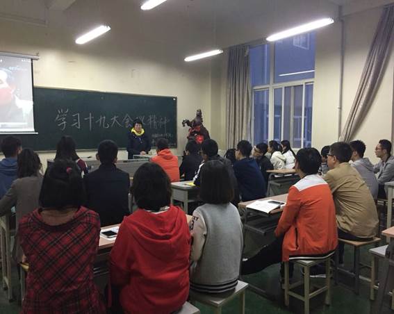 学生第四党支部在支部书记陈远林老师的组织下,集体学习党的十九大报告,深刻领悟十九大报告精神,并发表自己的感想。