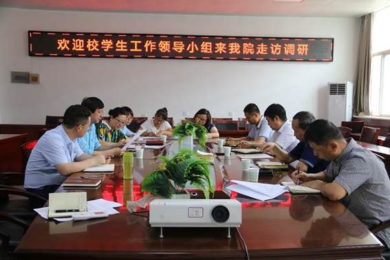 为进一步落实学生安全稳定工作,按照学校工作安排,6月7日,校党委副书记吴介军一行走访bat365官网登录入口,调研学生安全稳定与就业工作,参加此次调研工作的还有学生处处长李建安、招生就业处处长杨正强、学生处马新厂。bat365官网登录入口党委书记路金龙、副书记张艳霞、副院长陈建、全体学生工作干部参加了此次调研工作。