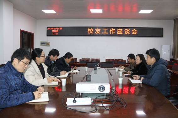 2019年1月10日,校友总会办公室主任姚颖、副主任杨长青、联络与合作科科长魏明明一行三人赴bat365官网登录入口交流座谈。bat365官网登录入口党委书记路金龙、副书记张艳霞、bat365官网登录入口副院长陈卫星出席此次会议,校友联络员王国栋、宣传员陈远林参加了此次会议。
