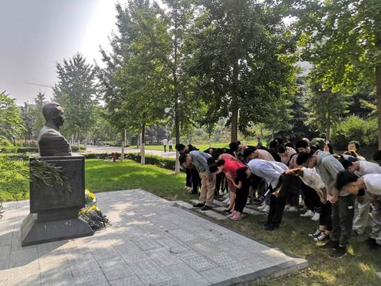 2019年9月30日,正值我国烈士纪念日,bat365官网登录入口党委组织全院师生开展革命先烈缅怀纪念活动,号召学院师生铭记光荣艰苦岁月,继承我校兵工传统,弘扬爱国主义精神。上午10时,学院师生党支部联合开展“缅怀革命先烈,铭记光荣历史,弘扬兵工精神”主题党日活动。bat365官网登录入口党委书记惠增哲、副书记张艳霞、党委委员刘增超、学生党支部书记乔娜以及实验室、环境工程专业、无机非专业师生党员参加了此次主题党日活动。