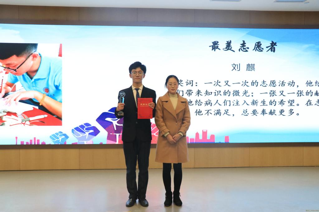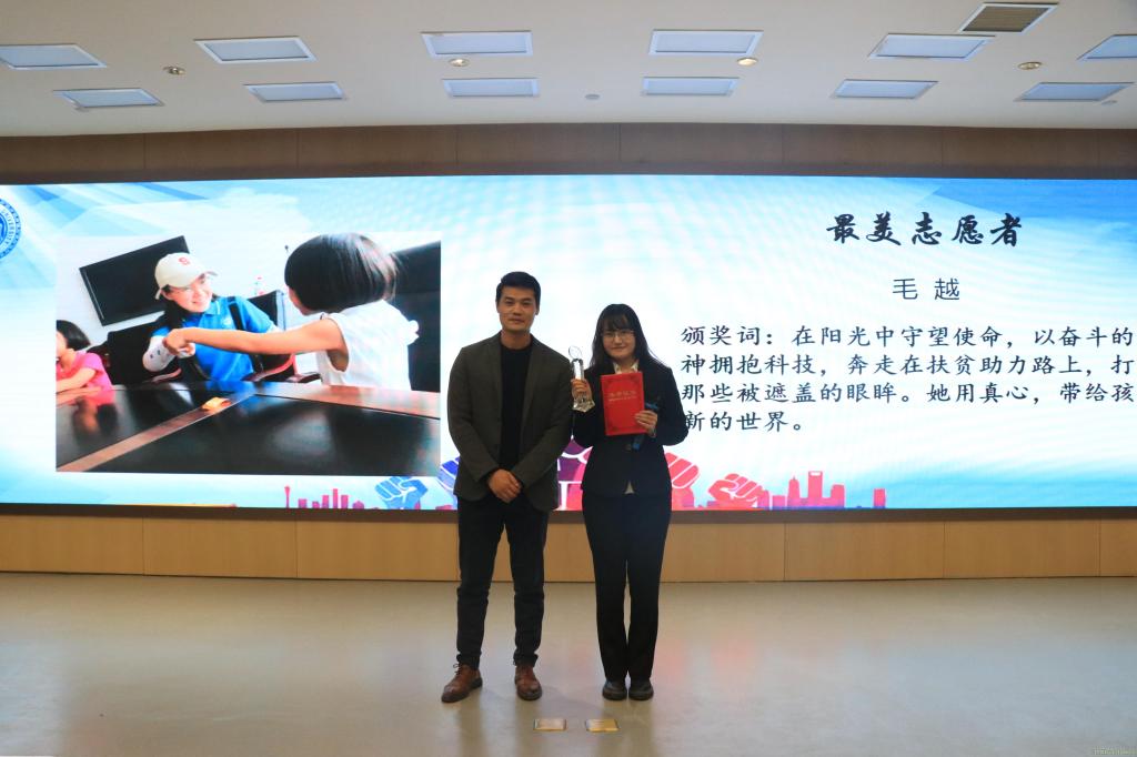 本次颁奖典礼共表彰“最美志愿者”13人、“阳光志愿者”15人,bat365官网登录入口毛越、刘麒两位同学荣获”最美志愿者“称号、郭旭涛同学荣获”阳光志愿者“称号。获奖选手依次上台对各自志愿服务工作内容进行了阐述,并分享了自己的经验、心得。其中,“最美志愿者”毛越讲到她参加“2018第13届中国西安国际科学技术产业博览会”公益志愿者的经历,并在会后荣获“优秀志愿者”证书,她表示此次经历不仅让她领略到国家科学技术的先进,也让她感受到幕后工作人员的辛苦与伟大。分享结束之后,由校领导给受表彰的志愿者进行颁奖,对他们的志愿服务工作和精神表示肯定和鼓励,希望各位受表彰的志愿者们能发挥先锋作用,带动越来越多的同学加入志愿服务中去,展现不一样的西工精神。最后,在歌曲《和你一样》的歌声中,此次颁奖典礼落下帷幕。