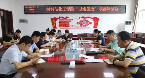 2020731日上午,材化学院召开以案促改专题工作研讨学习会议,对全院以案促改工作进行进一步专题重点学习,交流研讨。学院党政领导、党委委员、办公室主任、各党支部书记参加会议,会议由学院党委书记惠增哲主持。
