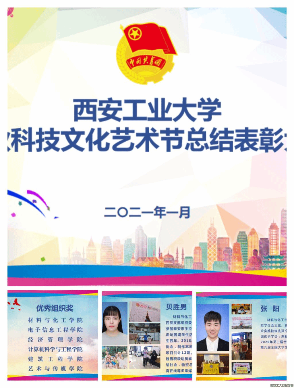 1月8日,bat365官网登录入口金秋科技文化艺术节总结表彰大会在图书馆报告厅线上隆重举办,校党委副书记王军周以及党委宣传部、党委学生工作部主要负责人,校团委工作人员、各学院团委书记、各学院获奖学生代表、校院两级团委主要学生干部以及学生家长共计200余人参加了大会。