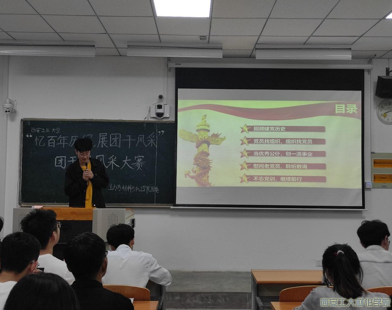 4月19日,晚19:40bat365官网登录入口团委于教三-201举办 “忆百年历程,展团干风采”团干部风采大赛决赛。本次比赛的评委为bat365官网登录入口团委书记段强、副书记乔娜以及团学组织负责人,18级和19级全体团干部参加本次比赛。