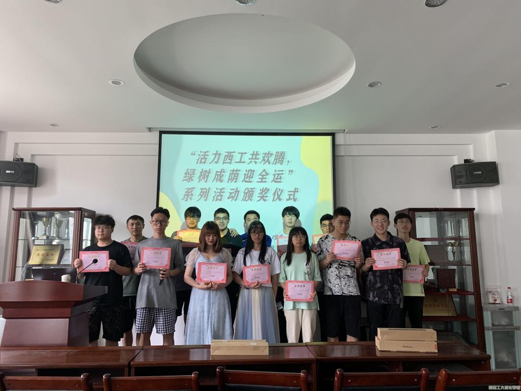 本次活动分为两个子活动:“文思若水展才华,全民全运添光彩”知识竞赛和“力与美的全运,净与绿的环境”环保手工创作大赛。知识竞赛由王孜炯、左郝莹主持。在此活动中,大家积极参与,小组内成员能够互帮互助,严格遵守比赛规则。现场工作人员有序地维持秩序,保证此次活动顺利举行。手工创作大赛由孙畅、石培毅主持。活动中有很多手工作品都富于创新,设计独特,制作精美,将环保以全新的视角展现给大家,使人眼前一亮。本次活动颁奖仪式于5月28日中午在工三-404举办,获奖队伍依次领取获奖证书与奖品并进行合照留念。