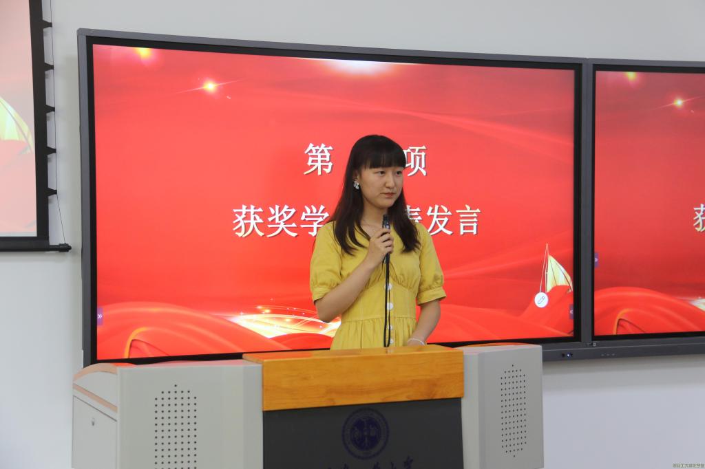 优秀辅导员助理张思雨和优秀学生干部代表张新依次上台发言,他们表达了对于此次表彰大会能获此荣誉的感谢,向大家讲述了自我成长变化的历程,并表露了要再接再厉、再创辉煌的决心。