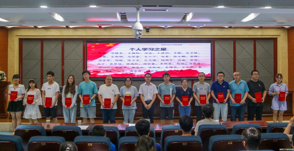 大会在庄严的国歌中拉开帷幕。首先,教师党支部书记王素敏带领全体党员学习习近平总书记在两院院士大会上的重要讲话精神。院长助理杨忠作学习心得分享交流。大会第二项,学院院长惠增哲在会上以《学院发展简史与未来规划》为题进行汇报。他结合自己的工作经历,通过丰富的事例回顾了材化学院几十年来的发展历程,细数学院取得的各项重大成果。他表示,学院的未来发展离不开每一名师生的共同努力,全院师生都应努力奋斗、勇于担当,学院党员干部要站在师生立场上谋划工作,办好事、办实事。接下来,代表学院参加学校“献礼100年,奋斗新时代”微党课比赛的两位党员张静雯和梁艳峰分别做了题为《雷锋精神在新时代的传承与发扬》《学习兵工精神,从身边榜样开始》的党课讲授。同时,为表彰先进、树立典型,大会为“学习强国先进学习支部”和“学习之星”进行了表彰和颁奖。随后,由学院党委委员侯永刚领誓,全体新发展党员面对党旗进行入党宣誓、老党员重温入党誓词,在洪亮的宣誓中,全体师生党员共忆入党初心。