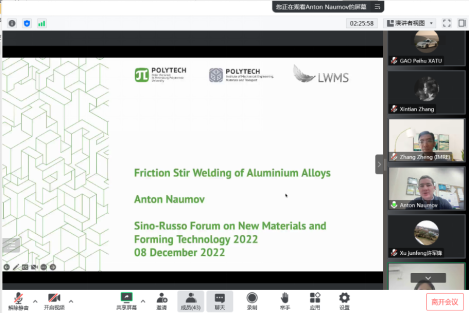 两天里,参会人员围绕铝基复合材料、镁合金材料、钛合金及其复合材料、高熵合金材料研发,材料第一性原理的计算与模拟,锌空气能电池材料的研发及应用,铝合金搅拌摩擦焊、高速摩擦焊、脉冲摩擦焊,冷空气动力喷涂等先进成形技术,镁合金表面防护技术、等离子增材应用等多方面开展研讨,交流学术思想、分享研究心得与成果,探讨未来的发展方向。中俄青年博士在新材料设计、先进成形技术与方法方面广泛交流,同时也增进了友谊。