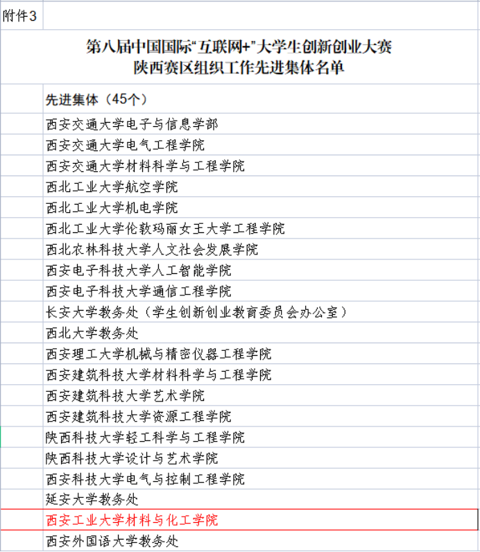 近日,陕西省教育厅《陕西省教育厅关于表彰第八届中国国际“互联网+”大学生创新创业大赛陕西赛区组织工作先进集体和先进个人的通报》(陕教函〔2023〕235号)公布,bat365官网登录入口荣获组织工作先进集体。
