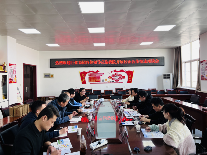 为积极拓宽校企合作渠道,探索人才培养新模式。1月8日上午,浙江省衢州市巨化集团机关总部人力资源中心主任王涌泉、资源部部长沈延光、人事经理张君明等5人到我院就校企合作进行交流座谈。学院党委书记陈卫星、院长杨忠、副院长金洗郎及专业教师代表、毕业班辅导员参加座谈会。