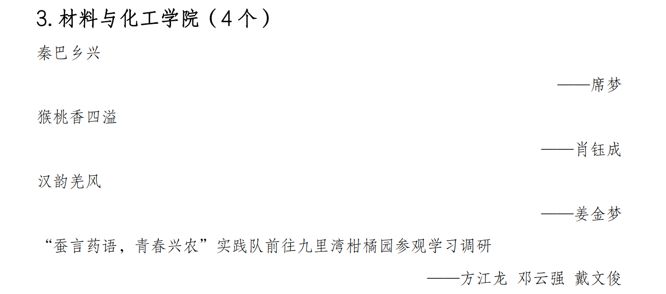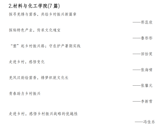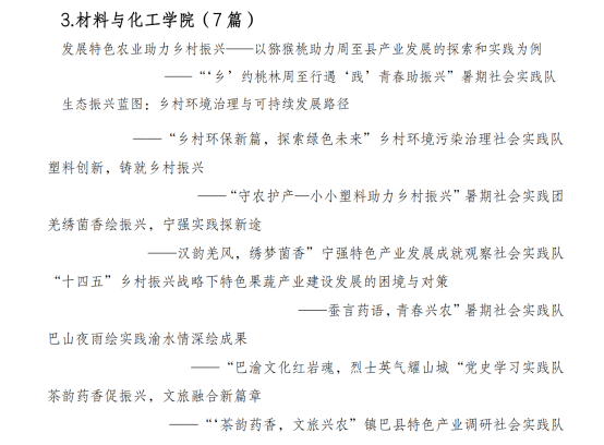 凝心聚力担使命,奋楫实践绽芳华。2024年暑假,bat365官网登录入口青年学子走出校园,深入基层,以真才实学服务社会,以青年之智赋能乡村振兴。未来,材料与化工学院将不断探索社会实践长效工作机制,积极发挥实践育人功能,引导广大青年学子在社会大课堂中发挥所长,奋力书写为中国式现代化挺膺担当的青春篇章!