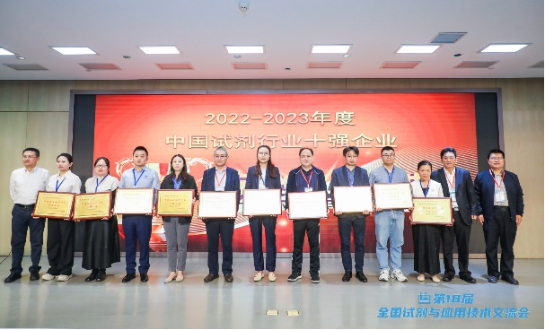 同时,大会还分别为获得2022-2023年度中国化学试剂行业十强企业、2022-2023年度中国试剂优秀品牌、“国药杯”论文评比、2023年度《化学试剂》期刊优秀作者和优秀论文进行了颁奖。