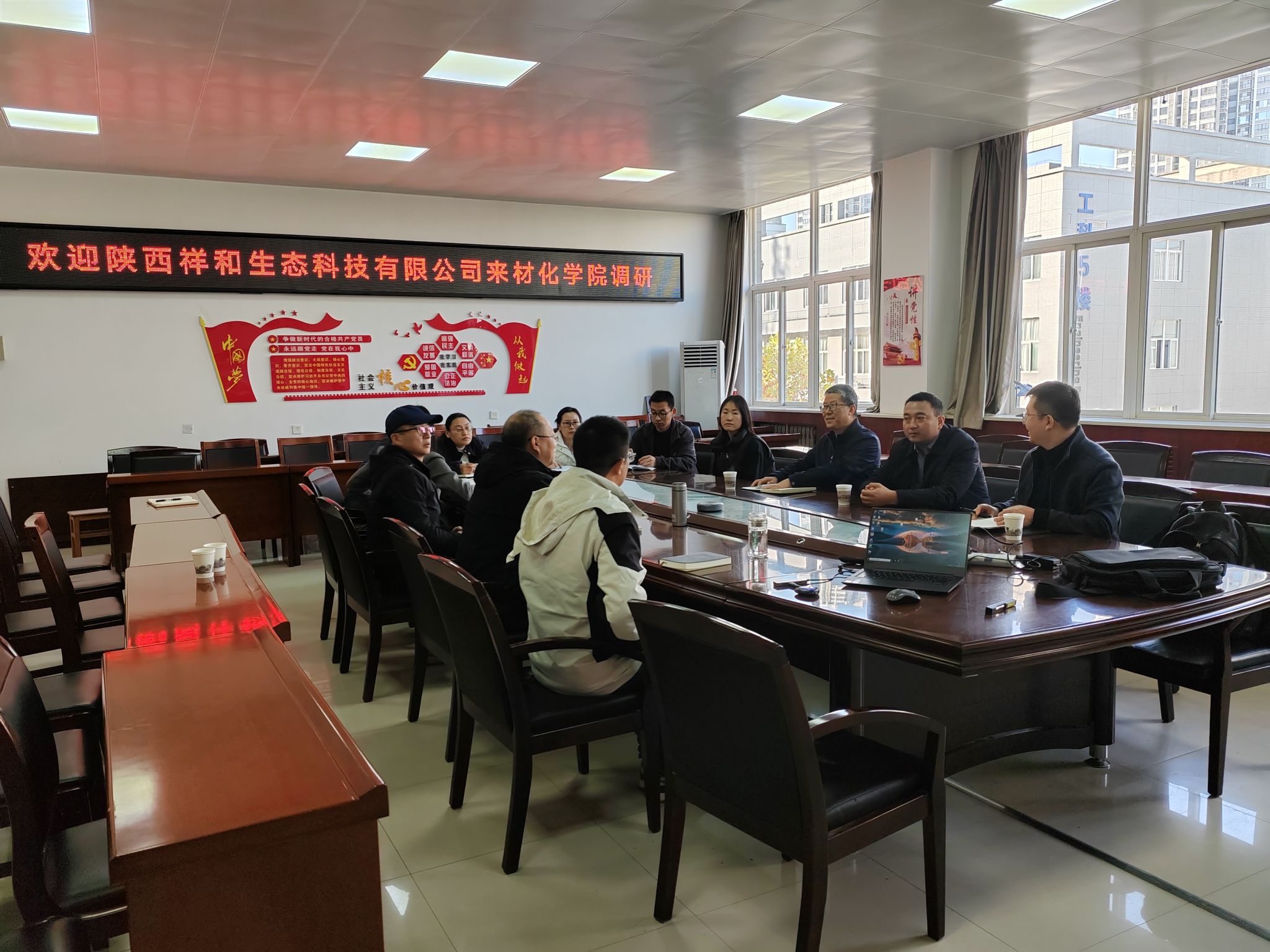 11月25日,延长石油西北化工研究院与陕西祥和生态科技有限公司负责人一行来bat365官网登录入口调研交流。本次调研交流会在工3-410召开,延长石油西北化工研究院张伟副院长、袁亚飞工程师及陕西祥和生态科技有限公司杨兴鹏董事长与bat365官网登录入口院长杨忠、高分子材料工程专业和基础化学教研室教师代表等参加了本次调研交流会。