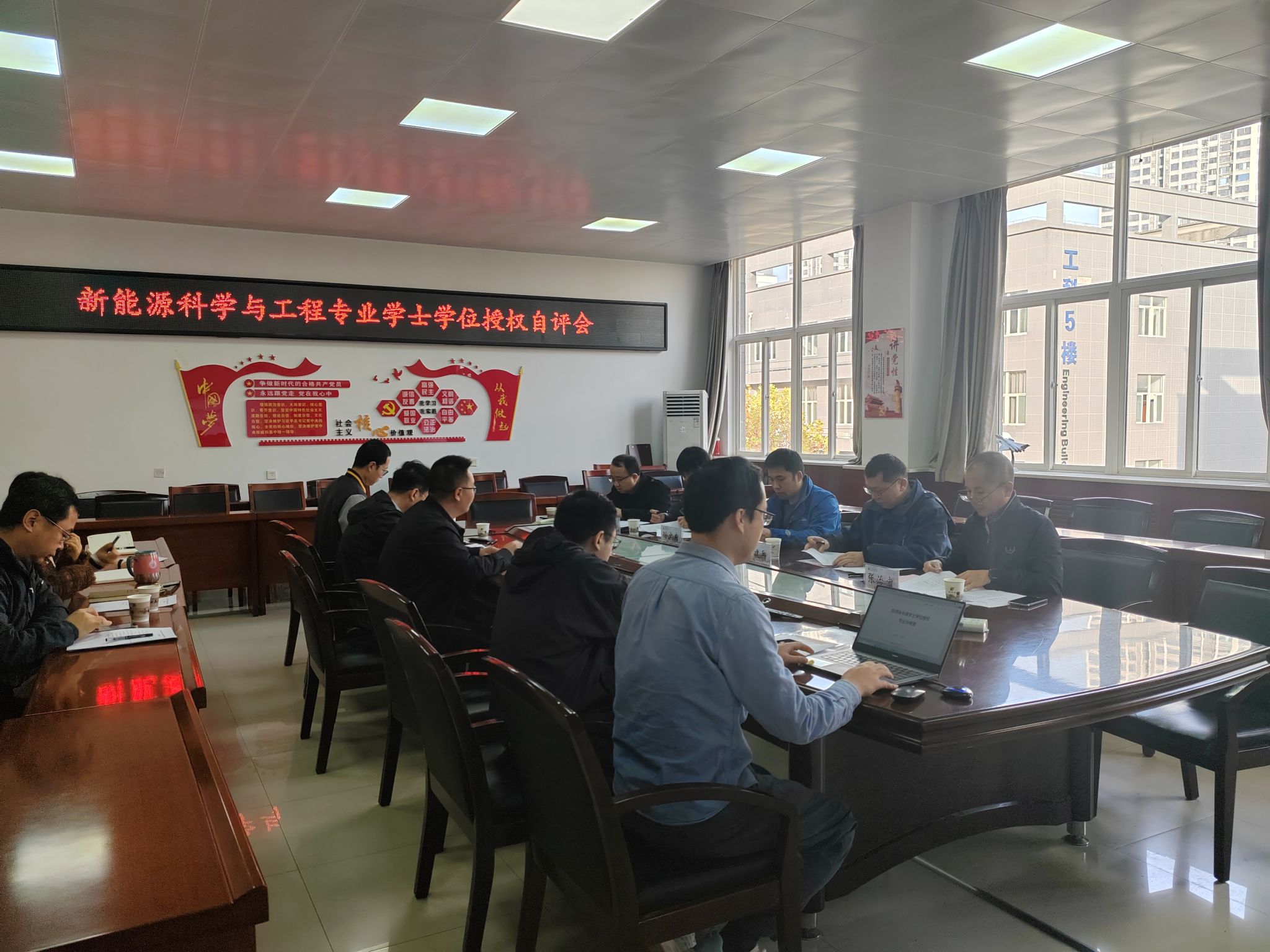 首先,杨巍致欢迎辞并向与会专家简要介绍了我院新能源科学与工程专业建设情况。接着,专家评审组组长孙少东主持学院审核工作,新能科学与工程教研室主任李祥汇报了《新能源科学与工程专业》学士学位授权申报书,教研室副主任蒋丹烈汇报了该专业的培养方案。与会专家还实地考察了专业实验室建设情况。各位专家在听取汇报和实地考察基础上,针对性提出了中肯的意见和建议。最后,评审组进行了投票表决,一致认为新能源科学与工程专业符合新增学士学位授予标准。