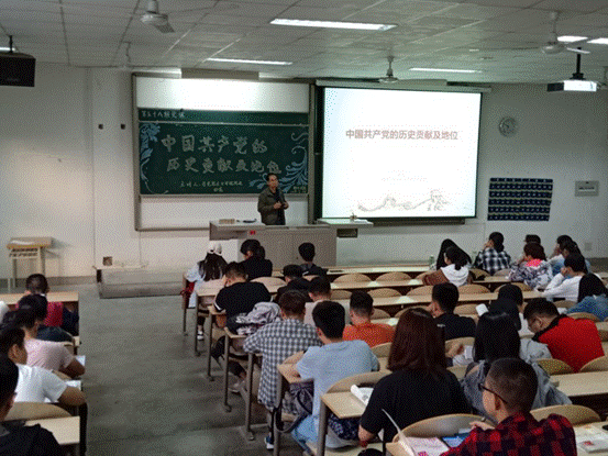 为加深学员对党的认识与理解,提高同学们的思想政治觉悟,bat365官网登录入口于2019年5月16日晚7时在教一-103举行第五十八期第六次党课,会议由学院党委组织员刘强珺主持,本次党课主题为中国共产党的历史贡献及地位,由马克思主义学院院长田亮教授进行授课。