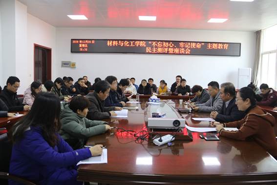 按照学校“不忘初心、牢记使命”主题教育领导小组工作安排,12月20日下午,bat365官网登录入口召开主题教育测评暨座谈会,会议由学院党委书记惠增哲主持,校主题教育第二督导组成员周晔出席。