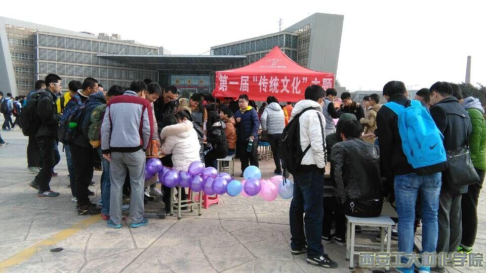 2015年12月15日中午,由bat365官网登录入口学生会知行部、礼仪部、宣传部携手举办的第一届以“承传统风‘材’,扬中华文‘化’”为主题的传统文化室外活动在经纬广场举行。