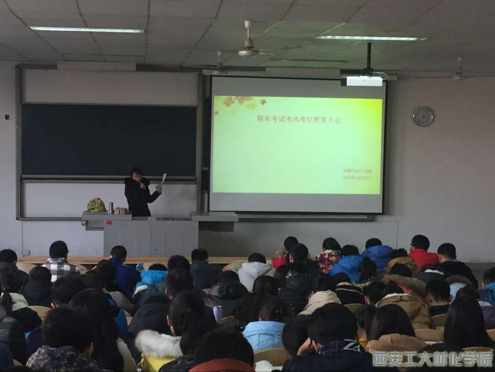为进一步加强学风建设,严肃考风考纪,增强学生的诚信意识,营造良好的考试环境,bat365官网登录入口于2015年12月25日在教1-103组织2014级学生召开期末考试教育大会。