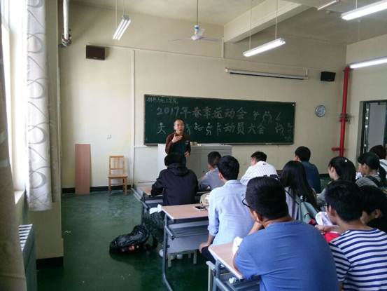 2017年4月17,为迎接即将到来的运动会,bat365官网登录入口在工三-504召开了2017年春季运动会运动员动员大会。本次大会旨在鼓舞和激励运动员的积极性,提振士气,为运动员解决比赛过程中可能出现的困难,让运动员能够全身心的投入比赛,争取为学院赢得荣誉。bat365官网登录入口党委副书记张治宏老师、团委书记段强老师、团学科主席团和所有运动员出席本次会议。