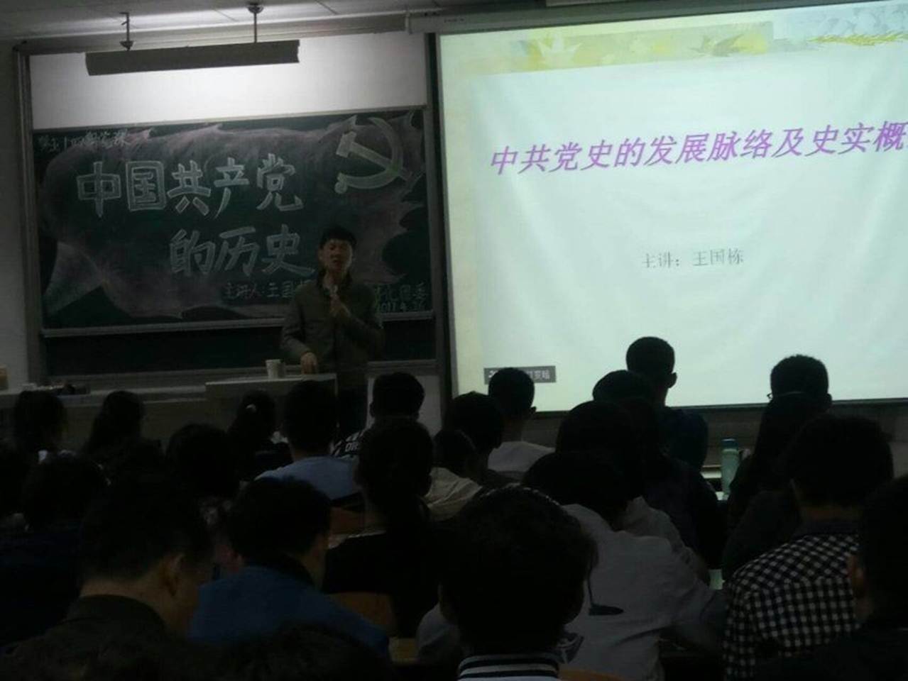 2017年4月26日,bat365官网登录入口团委在教二210教室开展第五十四期党课第四讲,并邀请到了2016级辅导员王国栋老师为同学们讲解中国共产党的历史。各年级推荐的优秀共青团员参加了本次党课培训。