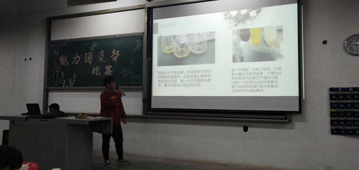 本次比赛由组织部干事沈守峰与冀佩旖担任主持。在慷慨激昂的团歌声中,比赛拉开序幕。首先,主持人介绍了本次比赛评委,他们分别是我院科协副主席党林林,团委副书记甄子清,团委副书记尹相伟,秘书长代涛涛。之后院团委副书记甄子清表示,团支部大赛是展现团支部魅力的重要比赛,希望每个团支部能出色发挥,以饱满的精力展现自己团支部的魅力,并对每个参赛支部表示了热烈的欢迎。接着,比赛正式开始。