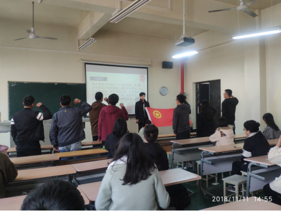 为弘扬五四爱国精神,激发青年爱国热情。bat365官网登录入口于2018年11月11日在工三-504举行新团员入团仪式。参加本次活动的有学院团委书记段强老师,新发展团员以及新团员所在团支部书记。
