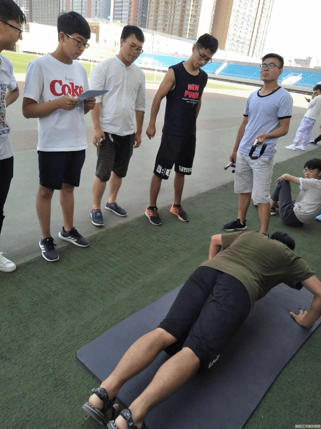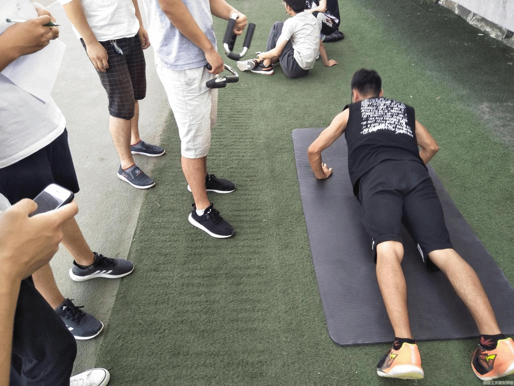 本次健身活动主题为社团日常体能训练及体能检测。训练主要内容为俯卧撑,仰卧起坐,平板支撑,1000米,50米,跳绳以及引体向上。训练期间,大家热情饱满,积极展示自己的能力,认真完成每一个训练任务。从热身到正式检测,从50米到1000米,每一个动作都井然有序,规范整齐。经过三个小时的不懈努力,同学们都大汗淋漓但直呼过瘾。至此,本次体能训练圆满结束。