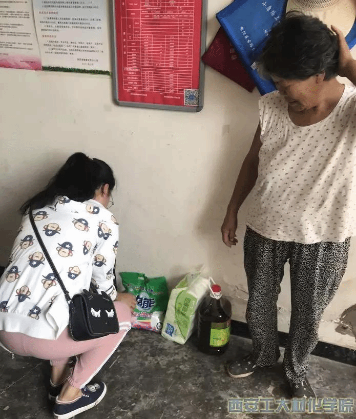 首先,在当地政府工作人员的带领下,队员们先来到了赵奶奶家里,赵奶奶儿媳妇眼睛患病,虽经过长期治疗,但仍未完全康复,因治疗费用欠下数万元的债务。为照顾儿媳,减轻儿子的负担,赵奶奶长年劳作,积劳成疾,需要长期的服用药物缓解病痛,现如今也丧失了劳动能力,家中仅凭儿子一人的收入生活。赵奶奶的情况令队员们心生怜悯,队员们分工合作,一部分队员与赵奶奶聊天谈心、唠家常,为赵奶奶带去了心灵上的温暖,其他队员给赵奶奶收拾屋子,打扫卫生,为赵奶奶带去了队员们所能给予的帮助,赵奶奶也因为队员们的帮助,脸上逐渐流露出了少有的笑容。随后,实践队员走访了李爷爷,孙奶奶等八户空巢老人的家庭,用不同的方式为他们带去了开心与快乐,带去了温暖。