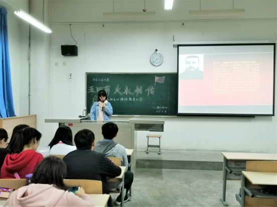 会议由策划部干事胡欣冉主持。会议伊始,首先由主持人介绍五四青年节的成立时间与纪念意义,深刻阐述五四精神的核心内容。随后,主持人对五四运动的重要人物李大钊,许德珩先生的英雄事迹进行介绍,通过学习了解,每个人都充分领略到大无畏精神和为革命不顾一切奋斗的热血精神。会议最后,大家对怎样做一位有志青年展开了热烈的讨论,提出为响应五四精神,我们应当热爱国家,追求进步,坚持民主,崇尚科学,从而做一个有志五四青年。至此,本次会议圆满结束。
