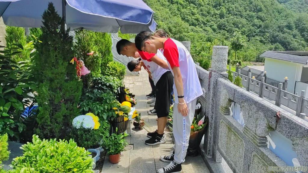 为表达对消防烈士高继垲的敬意,实践队员特别去花店购买了鲜花。怀着沉重的心情,实践队员到达了目的地——略阳县烈士纪念广场。陵园建在山腰处,但仅仅只是站在山脚下,实践队员便已经感受到一股肃穆之气。随后,实践队员便前往高继垲烈士的陵墓,在英雄的墓碑前,每一位队员都献上了他们手中的鲜花,以表达自己的悼念。前来悼念英雄的人络绎不绝,大家纷纷在陵墓前献上的鲜花,表达着他们对英雄的敬意。烈士的英雄事迹将会被世人永远铭记,他为党和国家及人民无私奉献,英勇顽强的精神会一直激励着全体实践队员,他也将永远的留在人们的记忆里,永不褪色。此次缅怀活动在全体队员的默哀中落下帷幕。