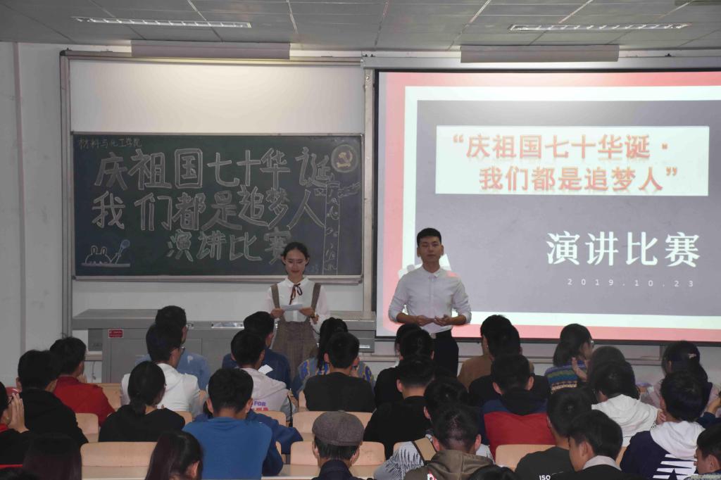 在主持人介绍到场嘉宾并宣读比赛规则后,本次活动正式开始。比赛过程中,19名参赛选手围绕“庆祖国七十华诞,我们都是追梦人“的主题,从容不迫、慷慨激昂、挥洒自如的展开演讲,字里行间都包含着对祖国真挚的情感。用饱满的热情,真挚的话语,抒发对祖国深沉的爱。比赛结束后,工作人员朗诵的《祖国啊,我亲爱的祖国》,更是将对祖国母亲最真挚的情感以最淳朴的语言描绘的淋漓尽致。最后,主持人宣布本次比赛到此结束。至此,本次活动圆满结束。