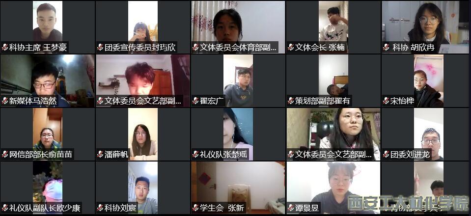 为促进学院青年学子在党的先进思想引领下积极探索,进一步弘扬五四青年精神,保证五四评优工作的顺利开展,bat365官网登录入口团委于2020年4月13日晚19:30在线上召开团学组织“五四评优”工作安排会。我院团委书记段强老师、团委副书记乔娜老师、团学组织全体干部参加会议。