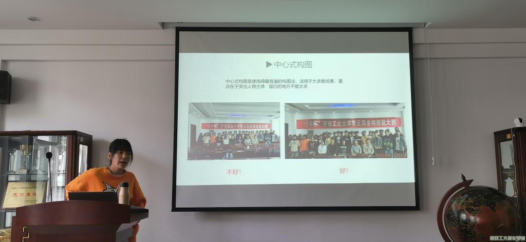 本次会议由信息宣传部干部张星主持。会议第一项,由张星对活动通讯稿的撰写进行讲解,他从通讯稿的题目、正文和落款三方面讲解通讯稿的整体结构,在定义、基本特点、文体要求、格式以及文稿类型五个方面进行了细致讲解。会议第二项,由周昱宏对活动拍照技巧进行培训,他向大家讲解如何借助手机里的工具来辅助拍摄,结合照片实例讲解中心式构图、低角度机位和引导线构图三种常见构图方法,并以一段朗朗上口的文字作为会议总结。至此,本次培训会圆满结束。