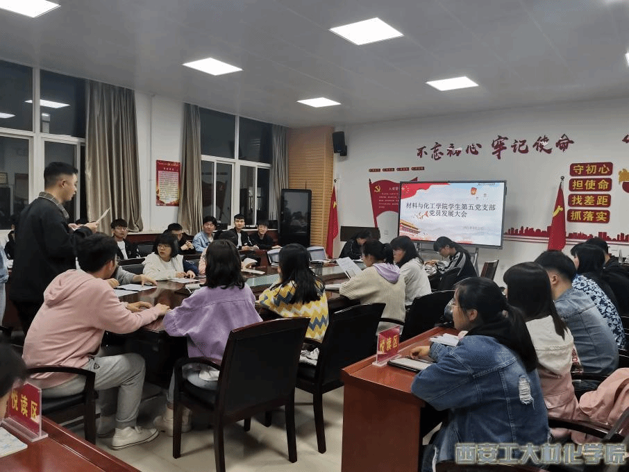 在支部副书记张思雨同志的主持下,按照《中国共产党发展党员工作细则》,每名发展对象进行自我阐述和叙述对党的认识,表明入党动机后,随即由入党介绍人汇报对发展对象的考察意见,支委委员汇报发展对象的审查情况;支部正式党员讨论并进行无记名投票表决。最后由支部书记乔娜宣读表决结果,全票通过了陈蕊等3名发展对象发展成为预备党员。