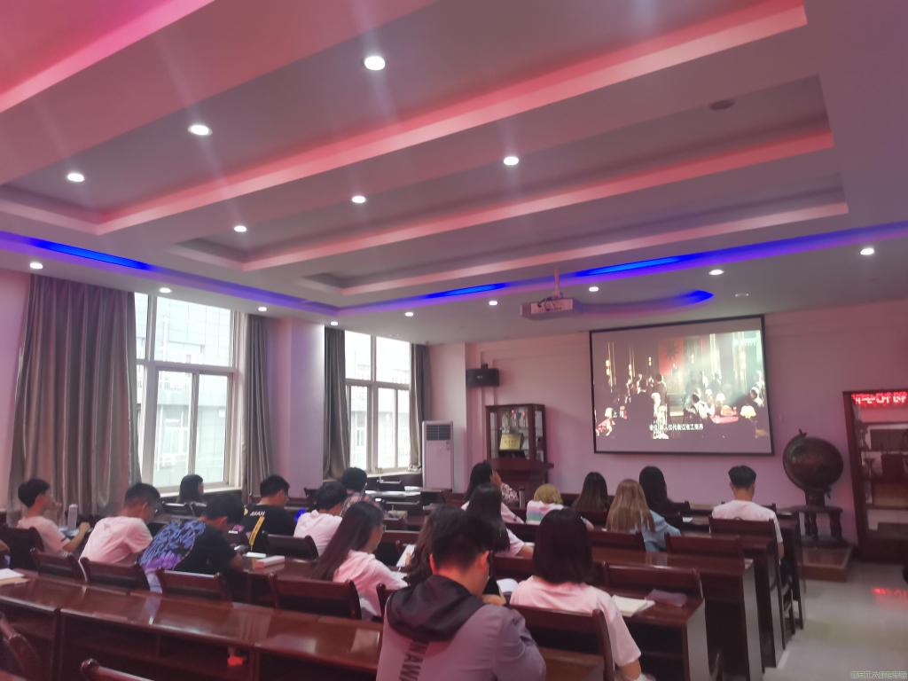 活动伊始,主持人周营正式宣布观影活动开始,随后简单阐述了此次活动的目的及主要内容:1.重温红色经典电影,深入了解我们党艰苦卓绝的奋斗历程2.学习优秀共产党员为中华民族谋复兴,勇往直前的大无畏精神和高尚品格。其中强调了要实现民族复兴,实现伟大梦想,必须进行伟大斗争,必须建设伟大工程,必须推行伟大事业。随后,主持人周营为大家播放了红色经典电影《建党伟业》。至此本次观影活动圆满结束。