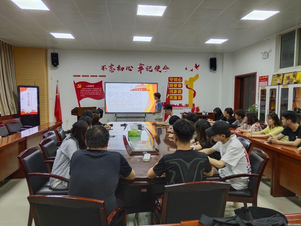 本次理论学习会由学生干部洪浩铭主持。会议开始,团学干部洪浩铭以时间为线索,详细讲解了1929年中国共产党成立、1949年新中国成立等几件大事,皆于让更多学生铭记重要的历史时刻。紧接着,全体成员一同观看了新中国成立后的宏伟发展视频,尤其是科技、文化、经济突飞猛进的辉煌时刻。通过此次学习,多数学生干部展开热议,纷纷表示看到祖国的快速发展和繁荣昌盛,身为祖国的一员深深感到自豪。学生干部张星发言:今年是建党一百周年,我们所有人都应该努力了解和学习党史国史,永远跟党走,不忘勤奋好学初心,筑梦祖国昌盛使命,为国家的发展贡献自己的力量。
