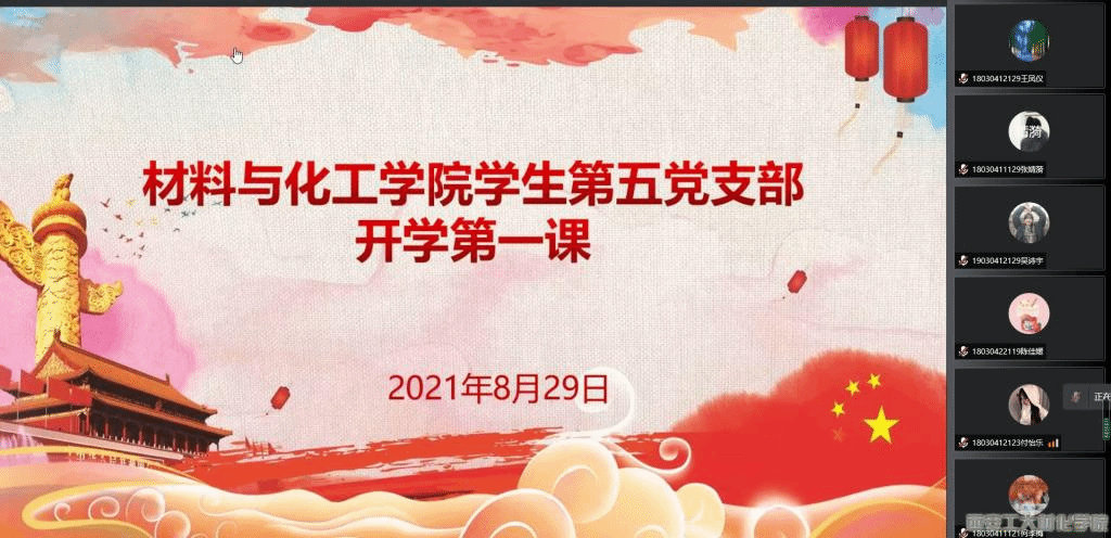 bat365官网登录入口学生第五党支部于2021年8月29日以腾讯会议形式举行“开学第一课”,全体学生党员按时参会。