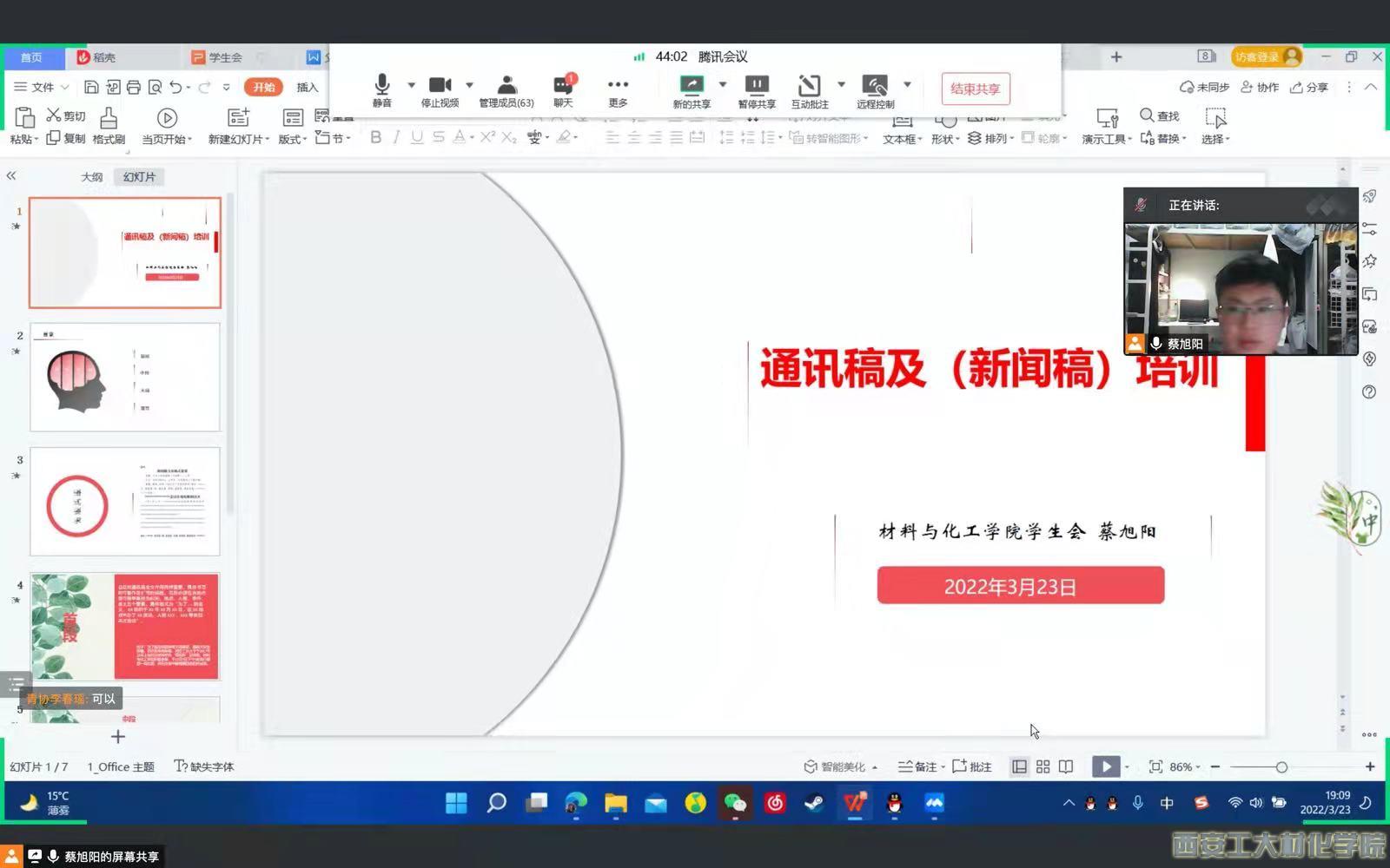 2022年3月23日晚,bat365官网登录入口学生会线上召开关于团学办公技能-通讯稿撰写培训会议,学生会全体学生干部参会。