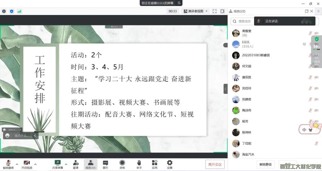 为新学期工作顺利开展,提高新媒体中心全体成员的工作能力,2023年2月1日晚19:00,bat365官网登录入口新媒体中心通过线上召开新学期工作布置会,全体学生干部参与此次会议。