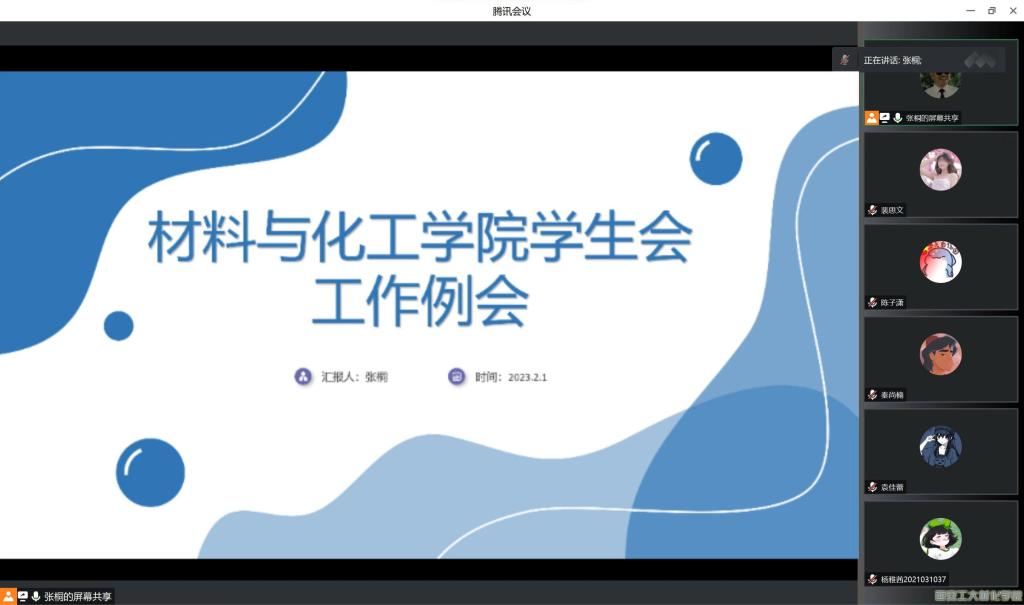新学期,新展望。2月21日,材料与化工学院学生会于腾讯会议召开新学期工作部署会议学生会全体成员参与,本次会议由学生干部张桐主持