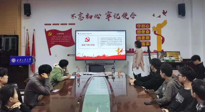 为深入学习贯彻习近平新时代中国特色社会主义思想,巩固主题教育成果,bat365官网登录入口学生第一党支部于10月24日下午在工三-410组织进行支部书记讲党课。党支部书记刘强珺主持会议,支部全体学生党员参会。