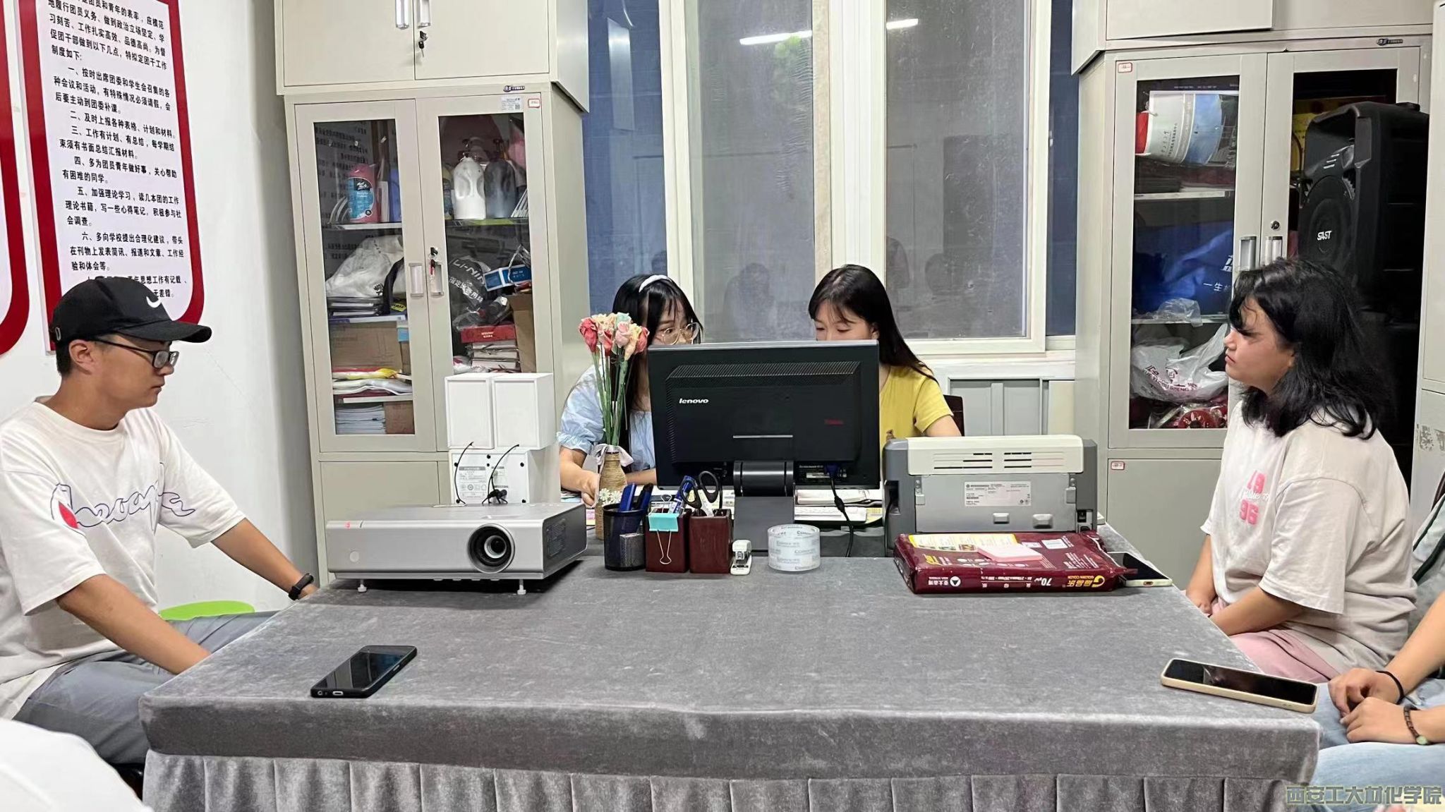 本次会议由学生干部李雨蒙、刘建君主持。根据新媒体中心各部门的工作,李雨蒙分别部署了视频、推文、海报、PPT等迎新工作,为后续迎新宣传做好了准备。随后学生干部刘建君对人员和工作分配问题、理论及技能培训问题、设备使用维护问题等方向进行了详细的讲解,并充分征求大家的意见想法。大家展现出了对后续工作的热情和期待,并对新媒体中心的发展充满信心。最后学生干部李雨蒙对后续工作进行了新的展望,各部门表示将以更饱满的精神状态投入到工作中去。至此,此次会议圆满结束。