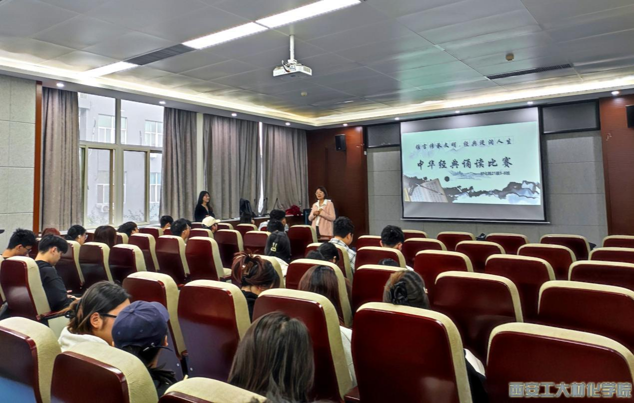 为弘扬中华优秀传统文化,增强青年大学生的文化自信,bat365官网登录入口2021级于10月30日下午在工4-204报告厅举办了“雅言传承文明,经典浸润人生”主题活动。活动由刘强珺老师主持,2021级5-8班全体学生参加。