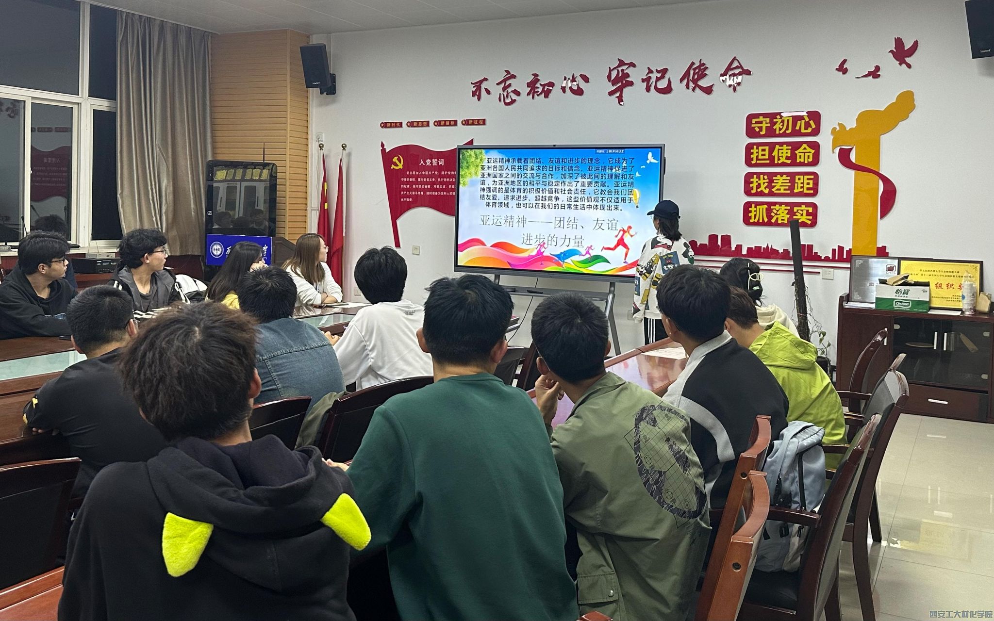 为加强思想理论学习,提高团学干部的自身修养,锤炼过硬本领,坚定理想信念,永远听党话、跟党走,bat365官网登录入口于10月26日晚在工3-410召开“学习亚运精神,激发国家荣誉感”理论学习会,本次会议由学生干部袁佳蕾主持,bat365官网登录入口学生会全体成员参与。