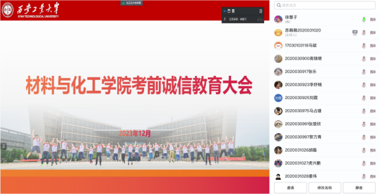 为贯彻落实立德树人根本任务,加强大学生诚信教育,推进学院学风建设。bat365官网登录入口2020级于12月14日召开考前诚信大会线上会议,会议由辅导员徐慧子主持。