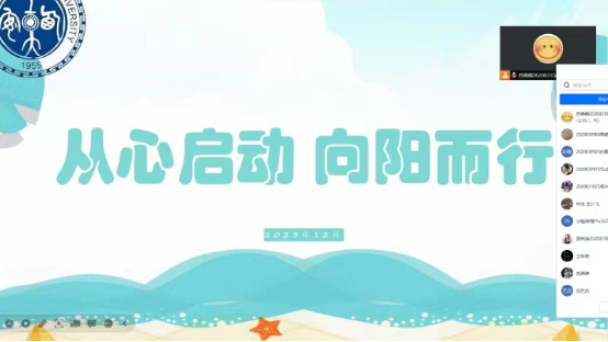 在考研和期末考试周到来之际,为缓解考生心理压力,bat365官网登录入口2020级于12月20日召开以“从心启动,向阳而行”为主题的心理主题班会,会议由2020级辅导员徐慧子主持。