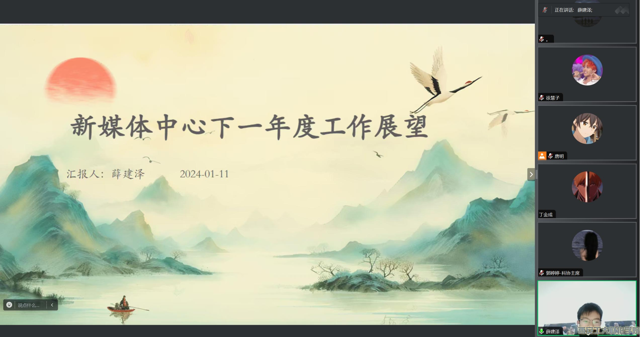 为使2024届新任学生干部深入了解岗位职务以及明确相关工作安排,bat365官网登录入口团委于2024年1月11日晚19:00在腾讯会议进行2024届第一次团学工作会议,bat365官网登录入口团委书记徐慧子、团委副书记段强以及2024届全体学生干部参与本次会议。